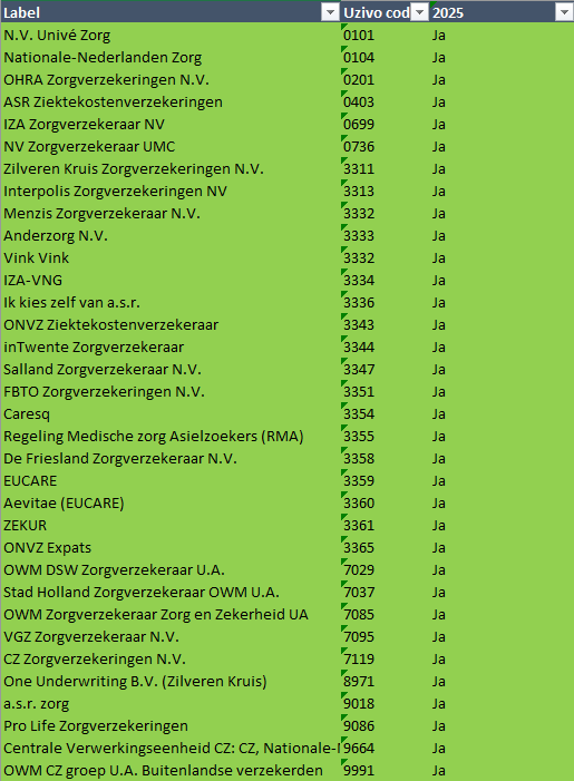 Bekijk hieronder het overzicht van de zorgverzekeraars waarmee afspraken zijn gemaakt voor 2026.